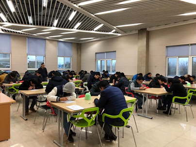 4:00考試正式開始,食堂內(nèi)里一片寂靜,只聽見“刷刷”的書寫聲,同事們個個信心十足,沉著冷靜,積極思考,埋頭答題。